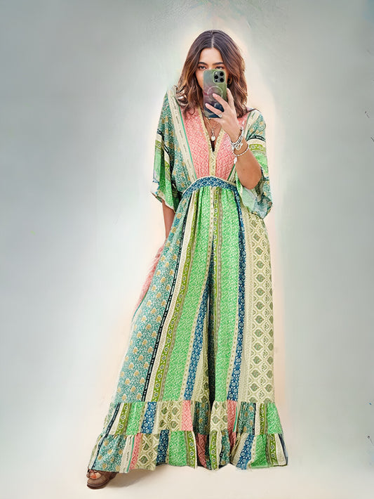 Elegantný overal s výstrihom do V a širokými nohavicami